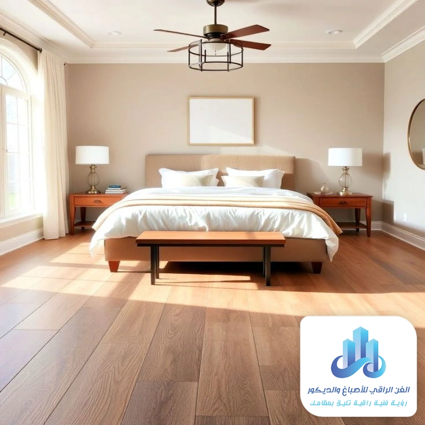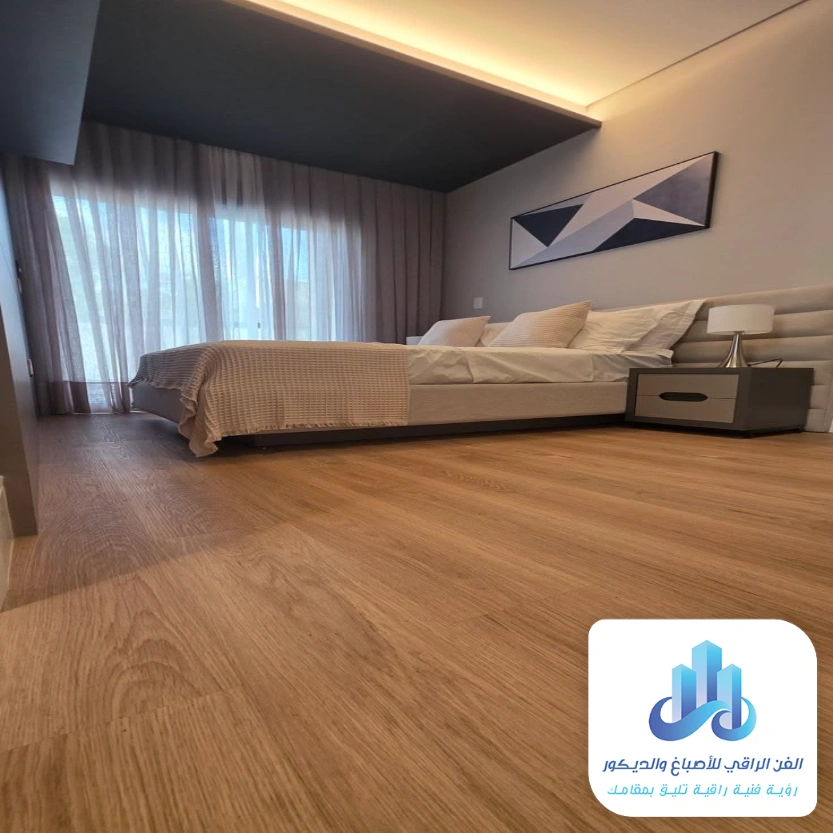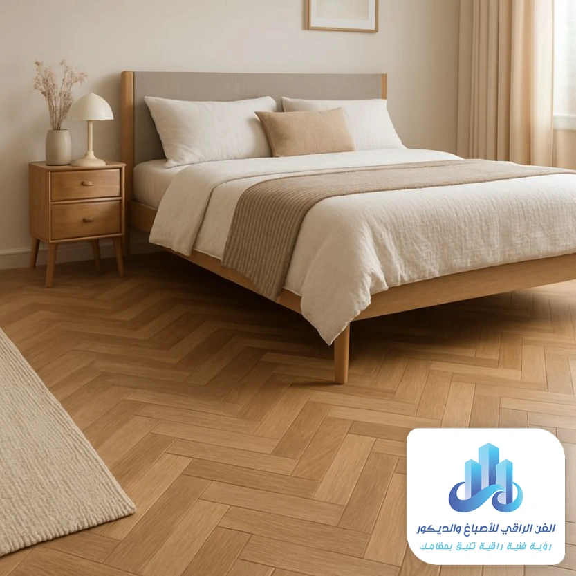 - الاناقة البصرية: الالوان الخشبية الطبيعية تمنح غرفة النوم عمقا وفخامة هادئة لا تحققها الارضيات الاخرى.
