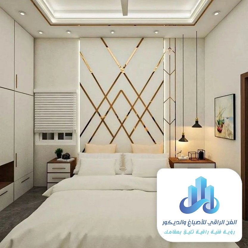 - جدار مميز كامل: تنفيذ واجهات استيل داخلية لغرفة النوم الرئيسية بلمسة ذهبية أو فضية.