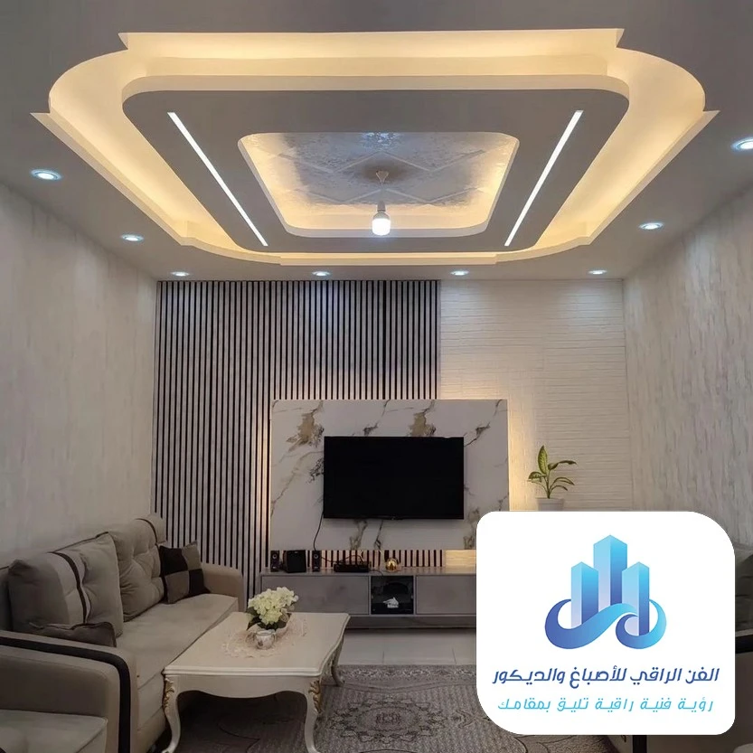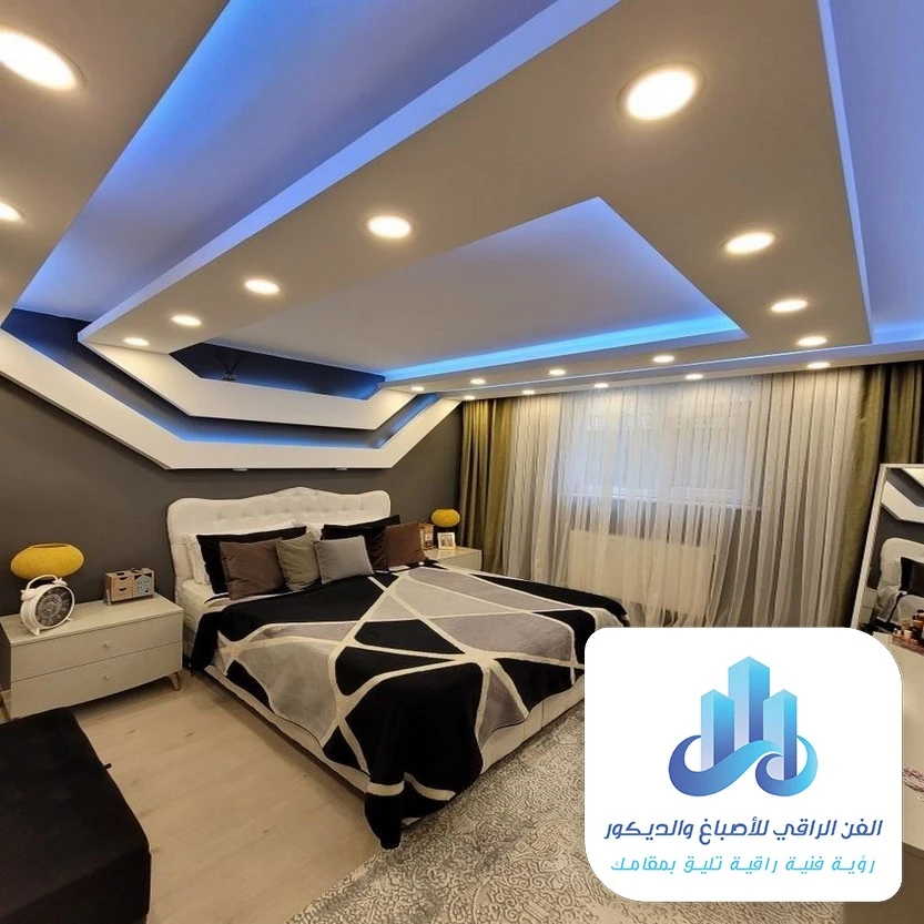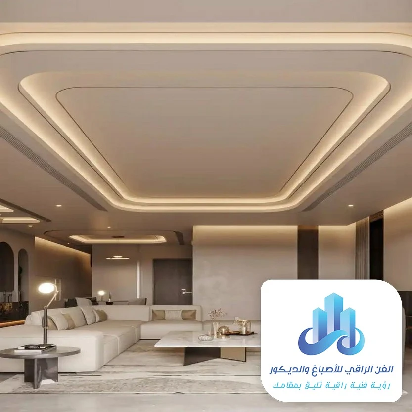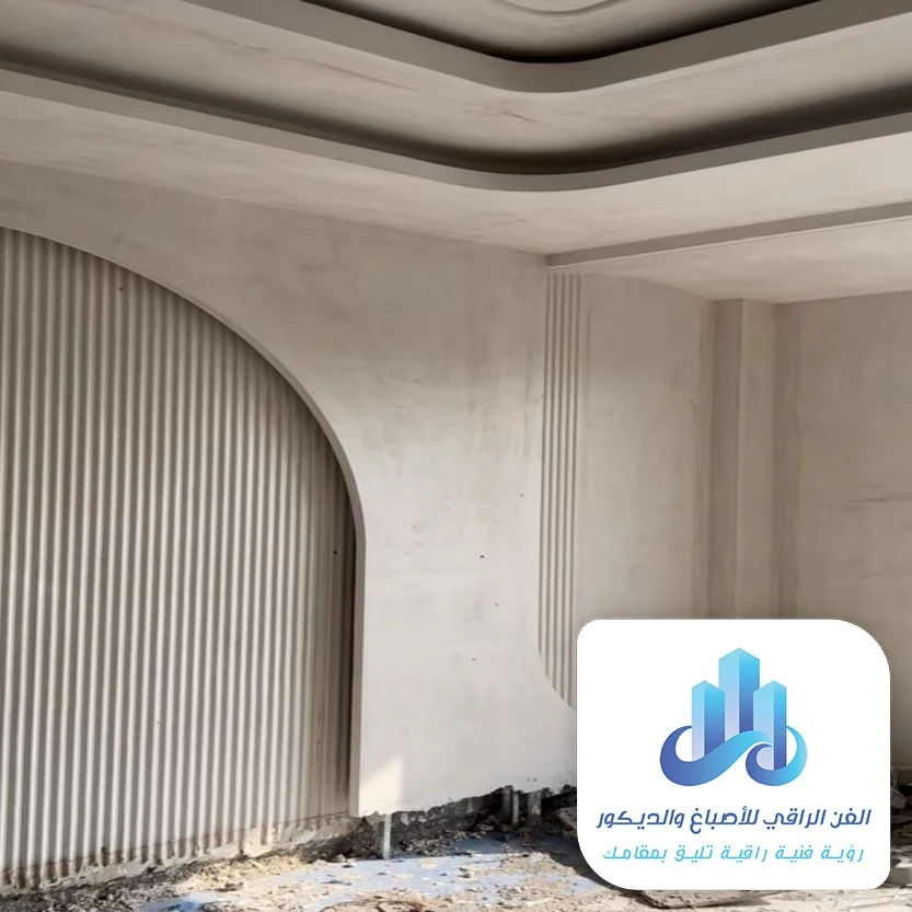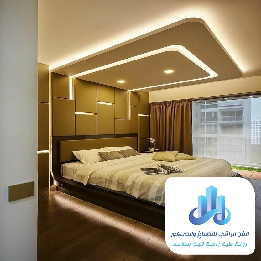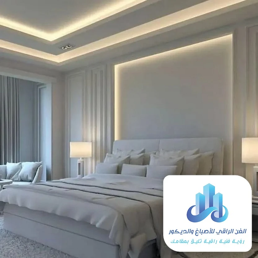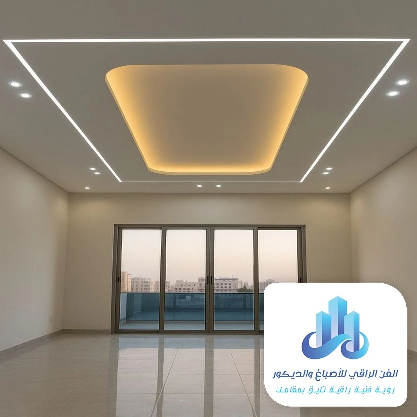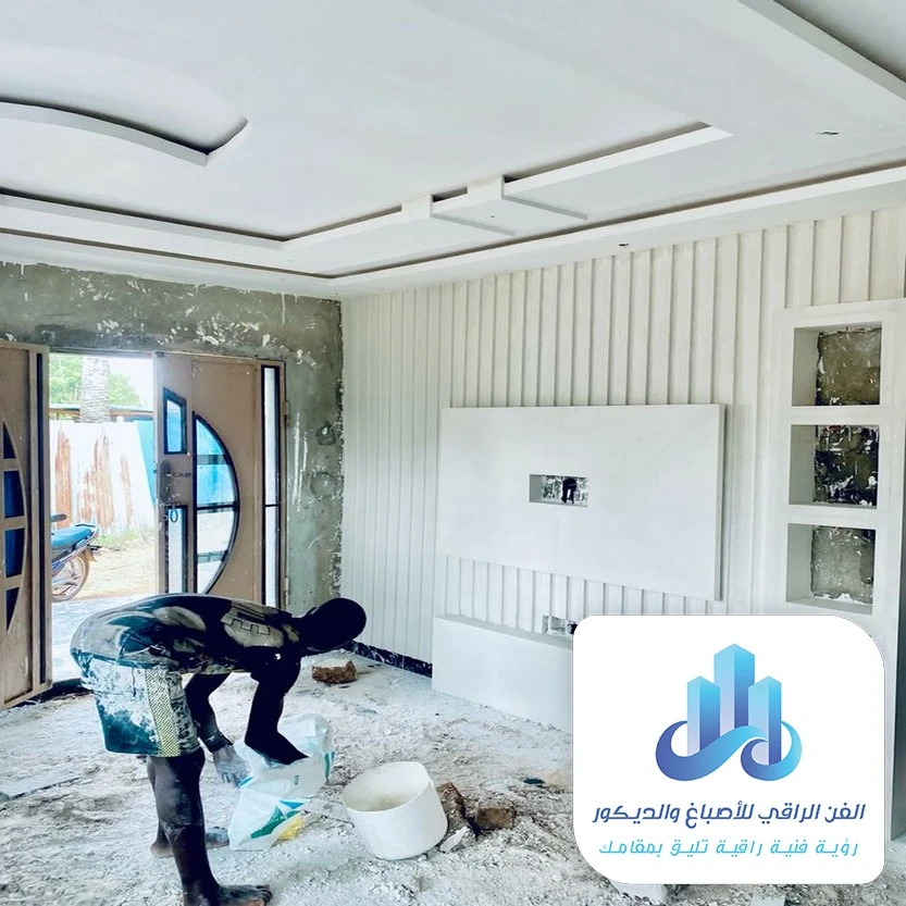 تنفيذ الإضاءات المخفية بدقة، ثم الدهان والتشطيب النهائي.