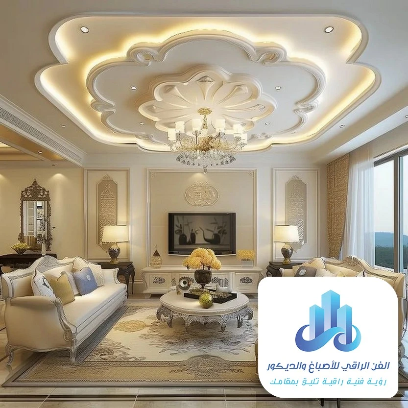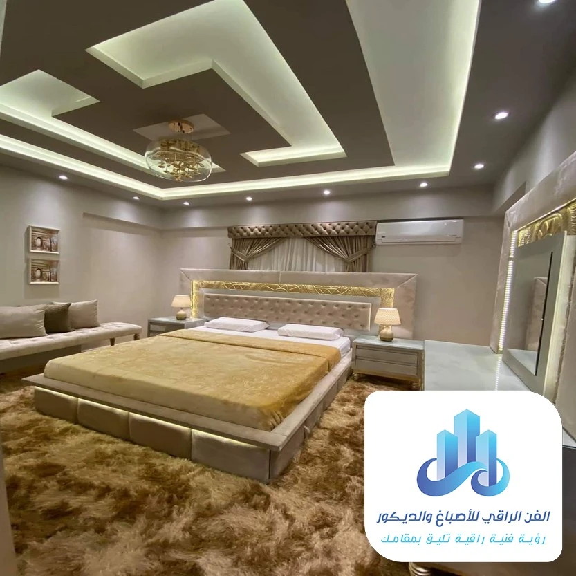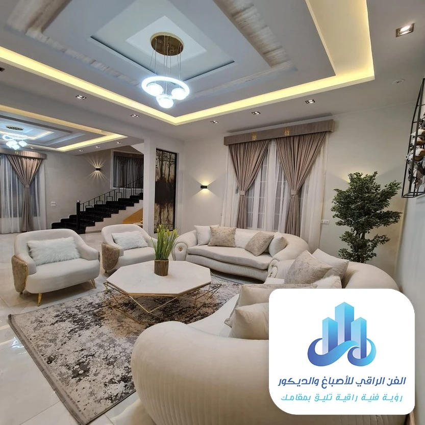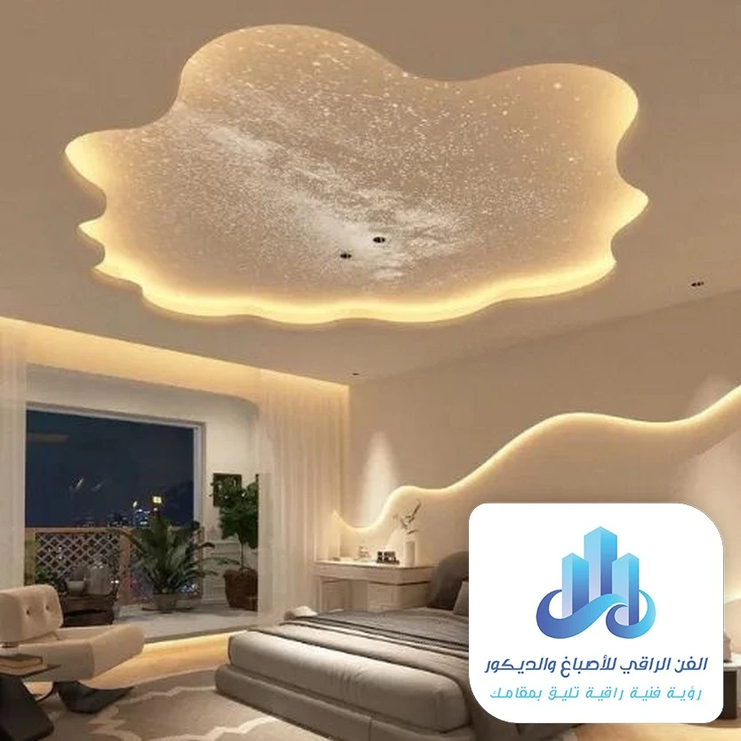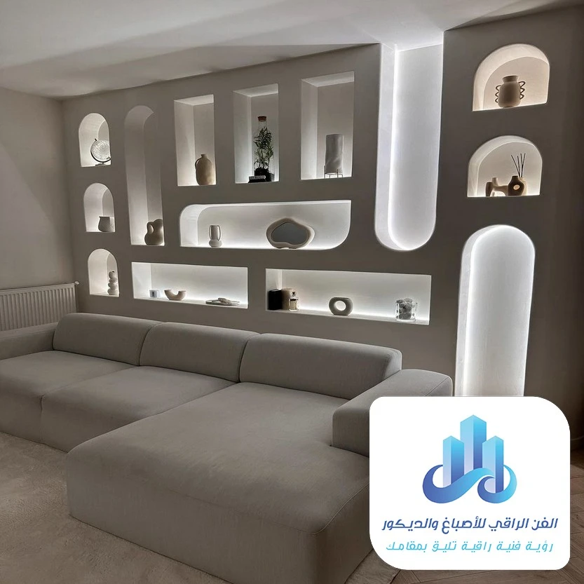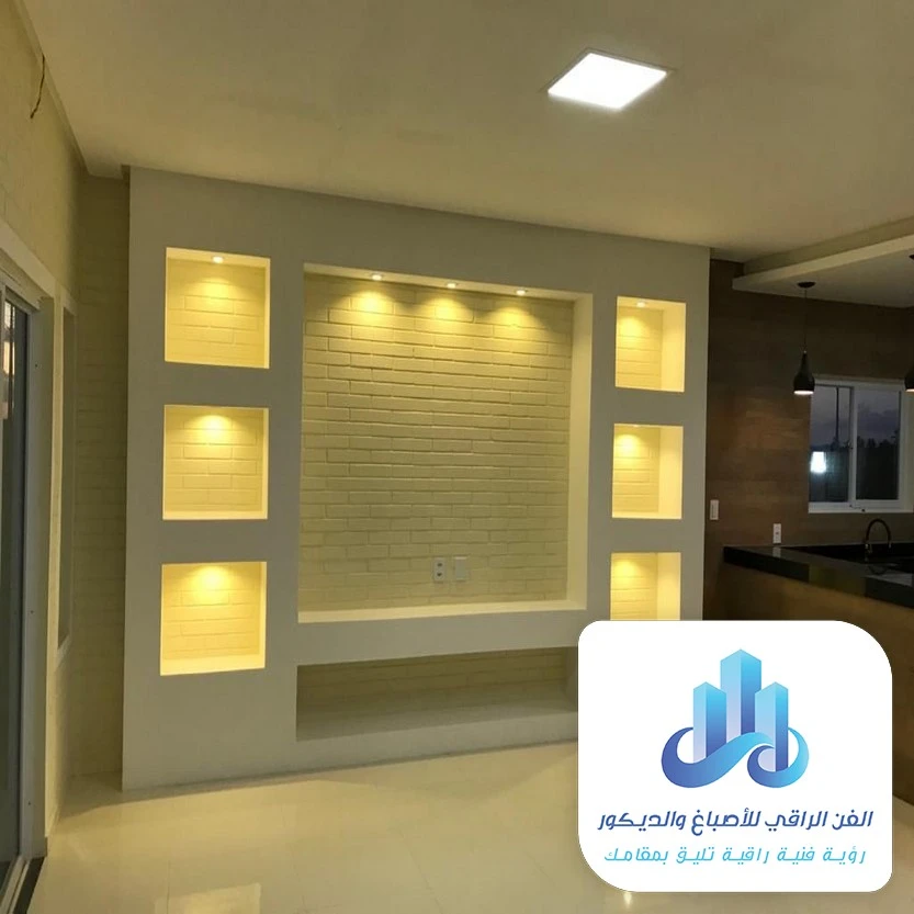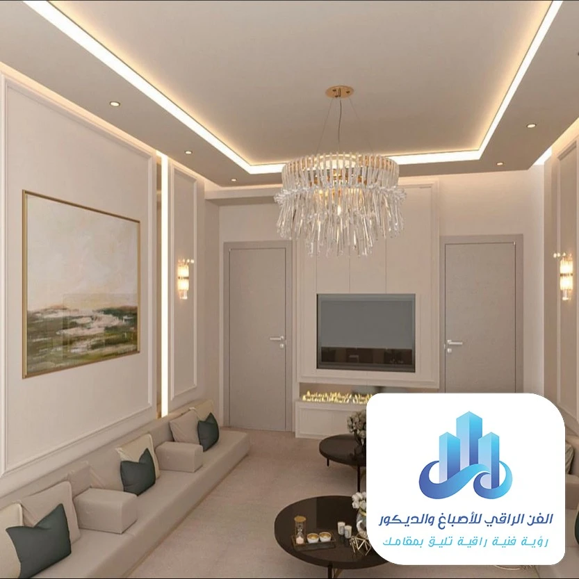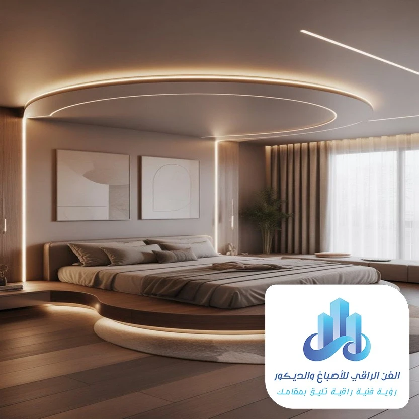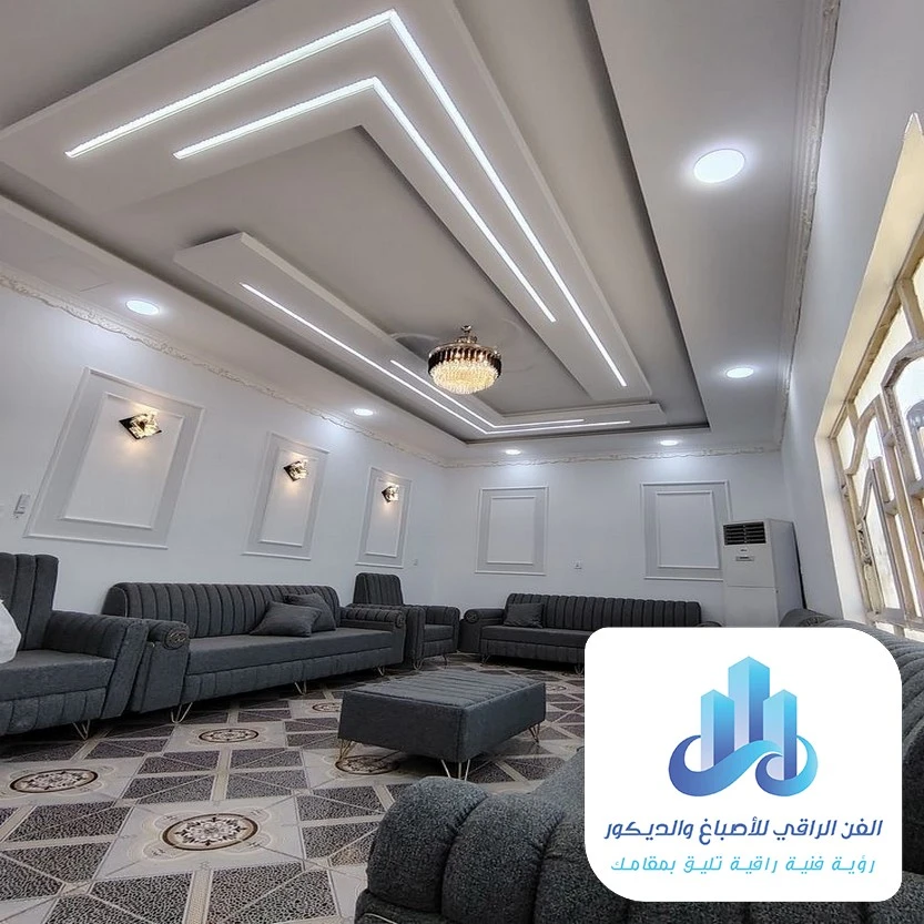 تنفيذ الإضاءات المخفية بدقة، ثم الدهان والتشطيب النهائي.